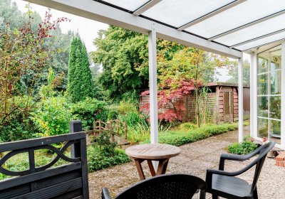 - Garage (BJ 1982), Gartenhaus, zwei Schuppen, überdachte Terrasse, zwei angelegte Teiche
