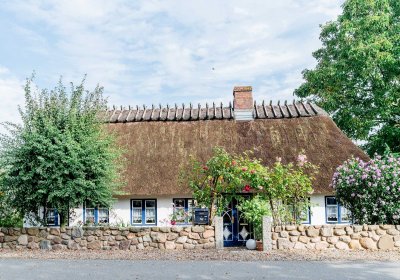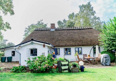 Willkommen an einem Ort, der nicht nur vier Wände hat, sondern eine Geschichte von Vertrautheit und Geborgenheit erzählt. Dieses charmante Reetdachhaus wird derzeit von einem älteren Ehepaar, das sich hier sichtlich wohl fühlt, liebevoll bewohnt: Ein Beweis dafür, dass dieses Haus wirklich ein "Zuhause" ist.