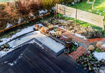 - Garten mit kleinem Teich, Nutzgarten und verschiedene Blumenbeete