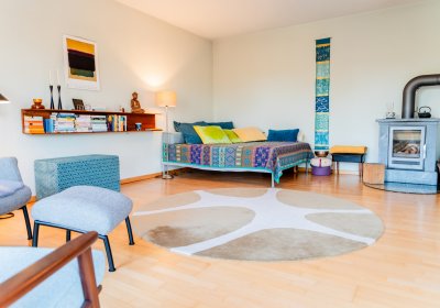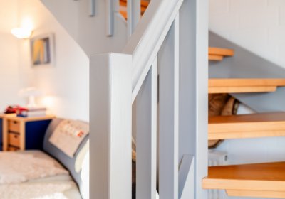 - Obergeschoss: zwei Schlafzimmer, Bad, Ankleideraum, Galerie