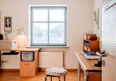- Erdgeschoss: Wohnen, Essen, Küche, Gästzimmer/Büro, Hauswirtschaftsraum, Gäste-WC, Diele, Windfang