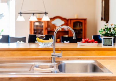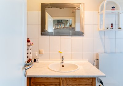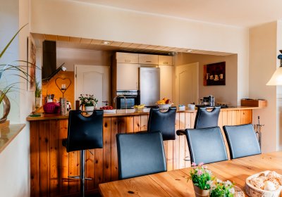 Das Haus selbst ist klassisch aufgeteilt und bietet Flexibilität: Drei Schlafzimmer und ein Bad im Obergeschoss, während das Erdgeschoss mit einem geräumigen Wohn- und Essbereich samt offener Küche und einem weiteren Schlafzimmer punktet.