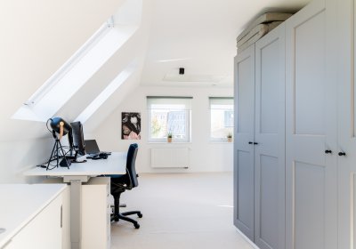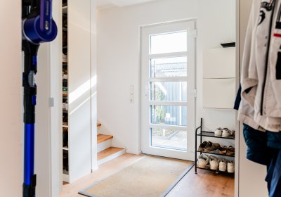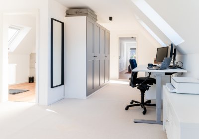 Das ausgebaute Dachgeschoss hält zusätzliche, gut nutzbare Räume vor, die Ruhe und Privatsphäre bieten. Hier oben wird es ein wenig stiller – ideal für Gäste, Kinder oder einfach für Momente, in denen Sie für sich sein möchten. Ergänzende Abstellflächen sorgen dafür, dass das Haus auch im Alltag strukturiert und aufgeräumt bleibt.
