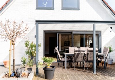 - Carport, kleine Garage, kleine Terrasse hinter dem Haus