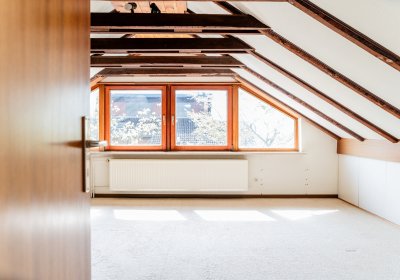 Ergänzt wird das Raumangebot durch einen Teilkeller mit zwei großzügigen Abstellräumen – perfekt für Vorräte, Hobby oder alles, was Sie gerne ordentlich verstauen möchten. Im Dachgeschoss eröffnet sich zusätzliche Nutzfläche mit Entwicklungspotenzial: Ein bereits ausgebauter Raum bietet eine Qualität, die über klassische Nutzfläche hinausgeht, auch wenn er baurechtlich nicht als Wohnfläche ausgewiesen ist. Darüber hinaus stehen weitere Flächen zur Verfügung, die sich individuell gestalten lassen.